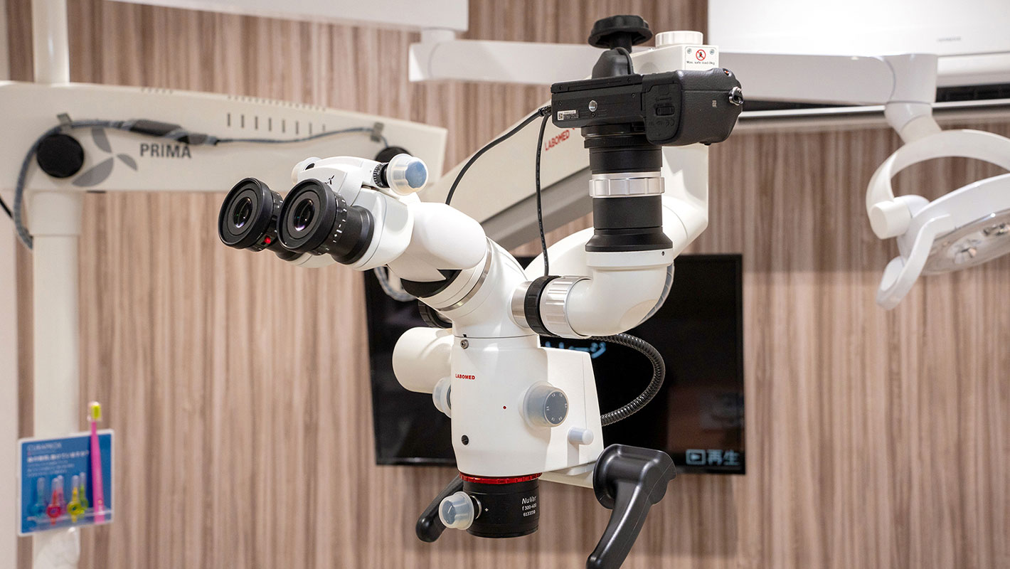 マイクロスコープとは、治療部位を高倍率で拡大する歯科用顕微鏡です。